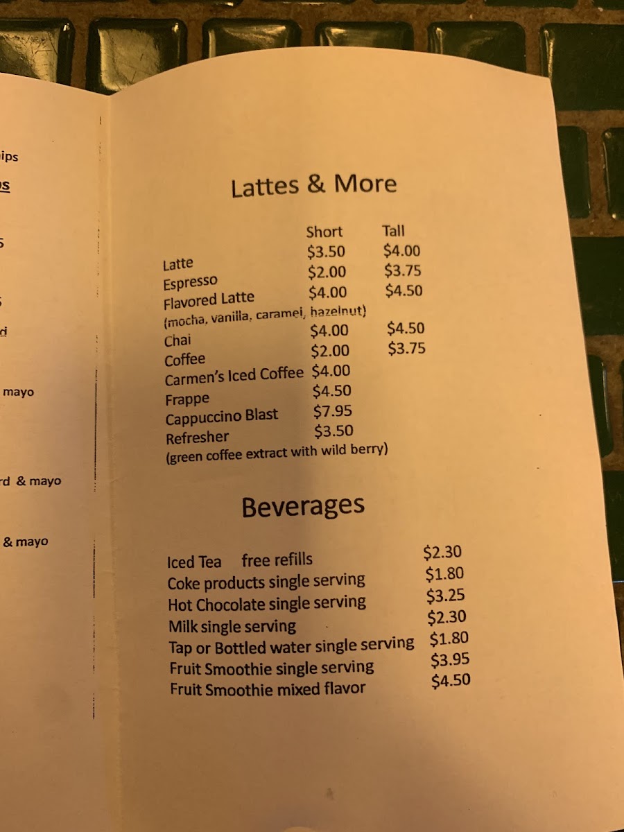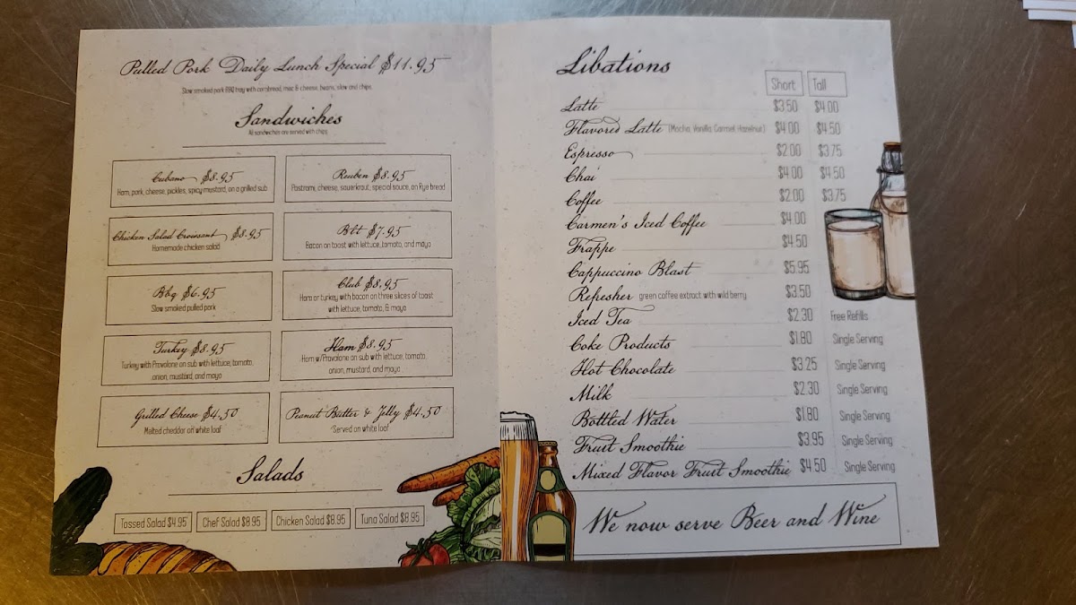 For those with a sweet tooth, the dessert options like pumpkin cake and a range of luscious ice cream flavors await. Drinks feature an enticing array of coffee libations and refreshing fruit smoothies that perfectly complement the hearty fare.